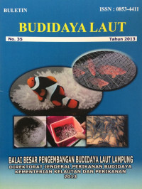 Buletin Budidaya Laut No.35 Tahun 2013 merupakan kegiatan perekayasaan teknologi budidaya laut selama tahun 2013 yang memuat 9 judul artikel tentang: - Perubahan Patologi Insang Induk Kakap Merah (L. Argementimaculatus) Akibat Fenomena Hab Cochlodinium Polykrikoiddes di Perairan Teluk Lampung - Pertumbuhan dan Sintasan Benih Kakap Merah (Lujanus Argentimacukatus) dengan Frekuensi Pemberian Pakan Berbeda di Perairan Bak Pendederan, - Pemeliharaan Larva Kakap Putih dengan Pemberian Artemia yang di perkaya DHA, - Pematangan Gonad dan Pemijahan Ikan Nemo Papua (Amphiprion percula), - Pembesaran Ikan Cobia (Rachyentron canadum) dengan pemberian pakan rucah efisien di Karamba Jaring Apung, - Pemeliharaan Benih (Amphiprion percula) dengan padat tebar berbeda, - Pemeliaharaan Larva Ikan Nemo Papua, -Aklimitasi Bibit Rumput Laut Hasil Kultur Jaringan Sebagai Pintu Pengembangan Kebun Bibit Rumput Laut yang berkualitas, -Aplikasi Vaksin Iridovirus pada Pemeliharaan Ikan Kerapu Macan (Epicephelus fuscoguttatus) di bak dan KJA.